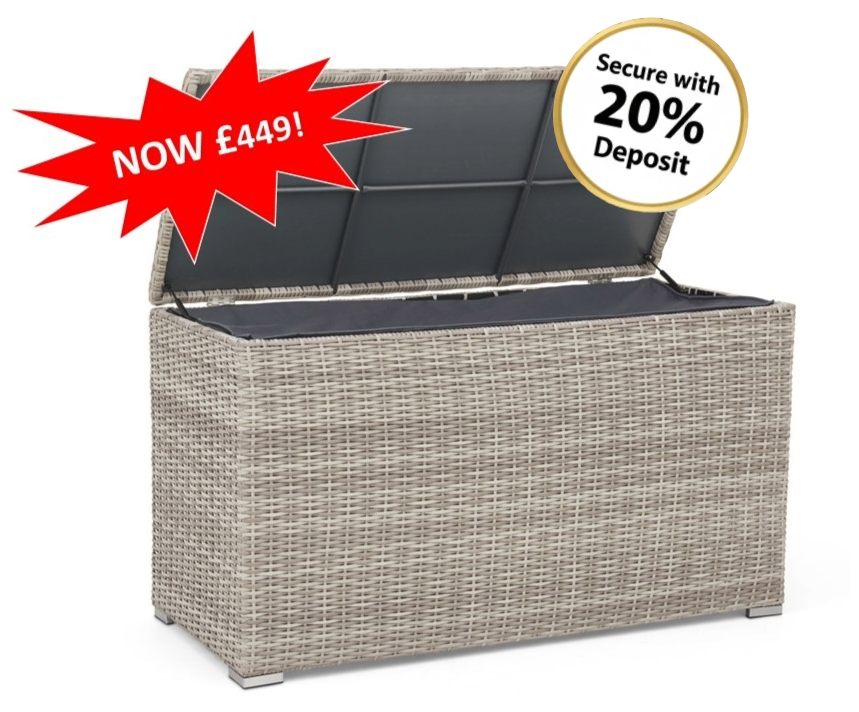Say goodbye to clutter and hello to stylish storage! Our fabulous cushion storage box is part of our elegant Florida Rattan Grey range — big enough to hold all the cushions for most of our furniture sets.
