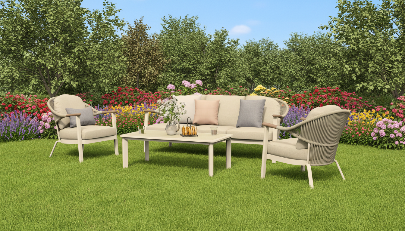 Elegant, comfortable, and built to last, the Cameo Sofa Set is a stylish addition to any garden or patio. Featuring a powder-coated, rust-proof aluminium frame with rattan detailing, this set offers long-lasting durability without compromising on comfort. Deep, UK FR water-resistant cushions and a sleek sintered stone tabletop make it perfect for relaxing or entertaining in style.